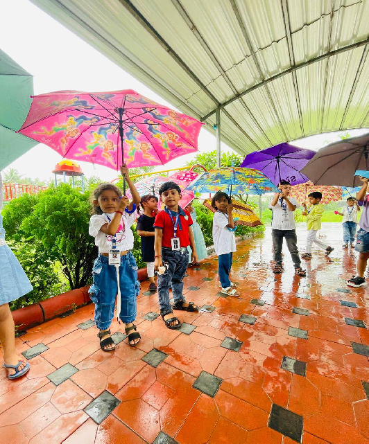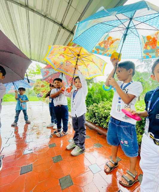 Our kindergarteners celebrated the rainy day with pure joy! Dancing in the rain, making paper boats, and creating rainy-day art made it a fun-filled day full of laughter and excitement.